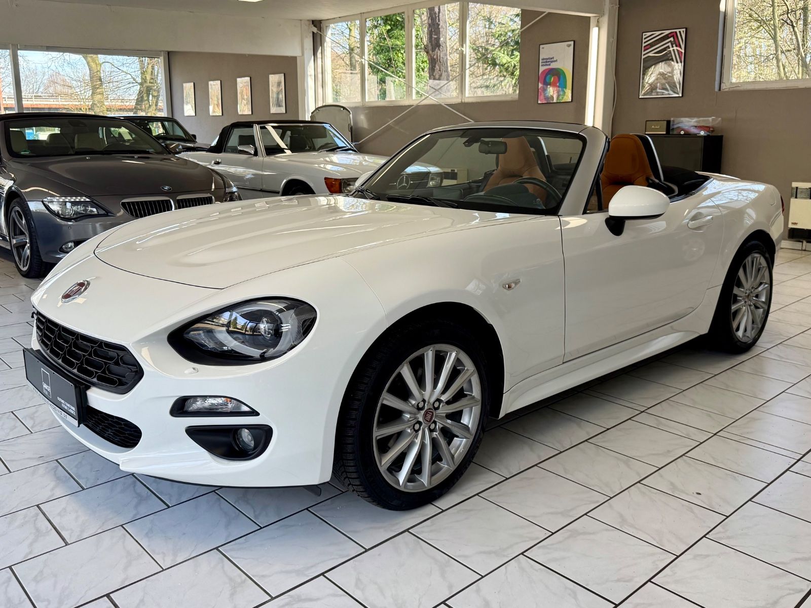 Und diese Sonne Italiens geht auch auf, wenn ein Exemplar des 124 Spider wie das hier angebotene vor uns steht: in der hochwertigen LUSSO-Ausführung, zum GELATO-weißen Lack das Leder in klassischem Cognac kombiniert, bringt dieser stilvolle Spider mehr als nur ein wenig mediterrane Lebensfreude in den Alltag!