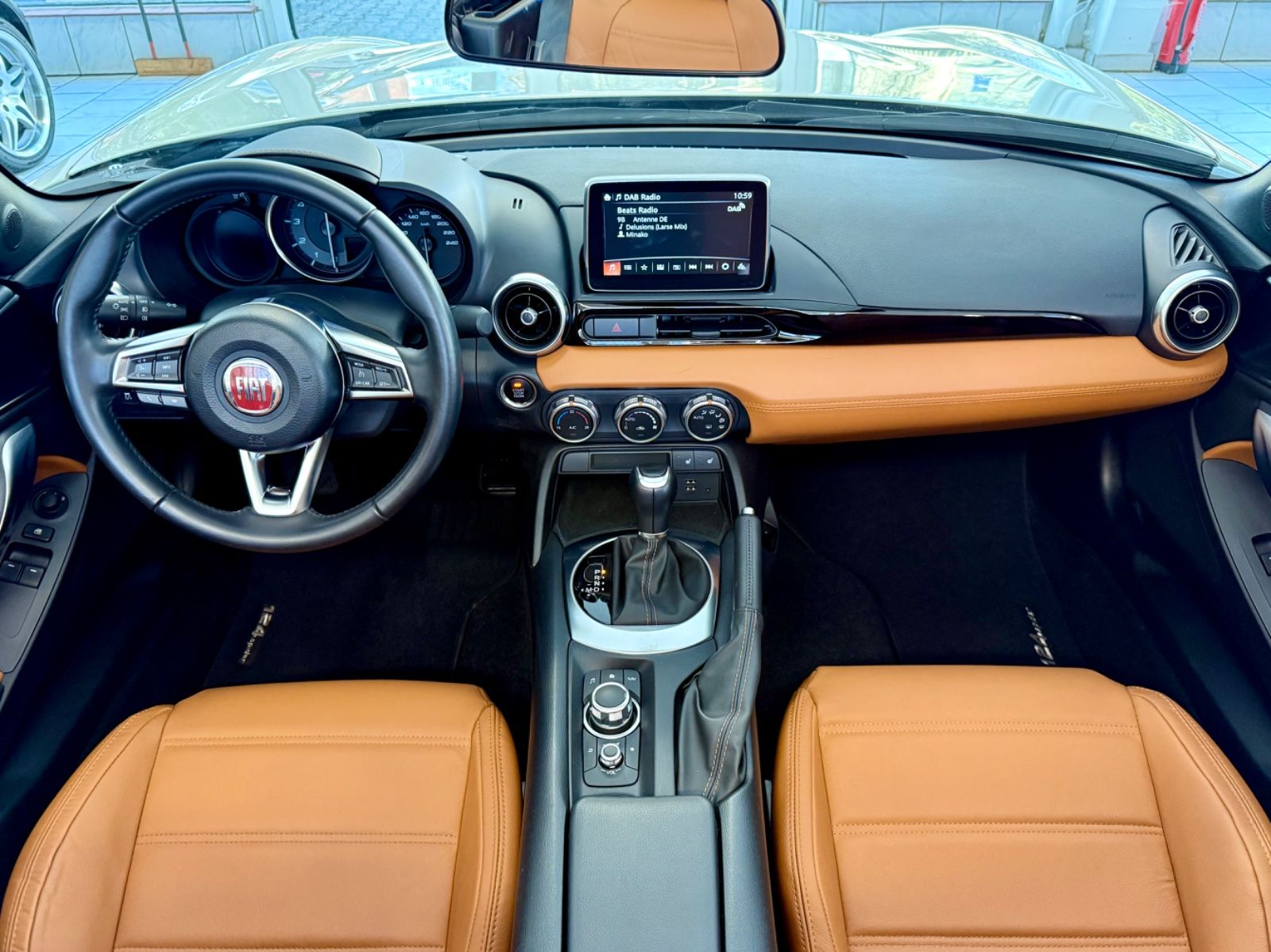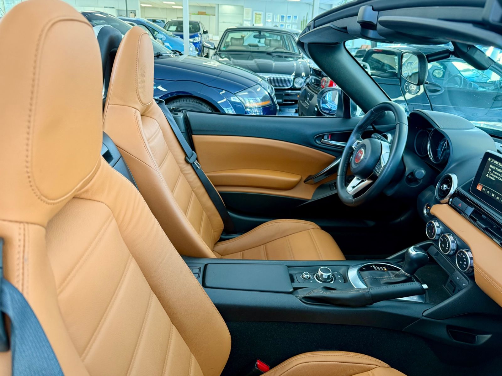 Aber nicht nur die elegantere und 14 cm längere Karosserie unterscheidet den 124 vom MX5 - auch der kräftige 1.4-Liter Turbomotor ist mit 240 NM Drehmoment deutlich überlegen. Besonders rar und souverän ist der Antrieb in Kombination mit dem hellwachen 6-Gang-Automatikgetriebe - und besonders spannend auch die Wirtschaftlichkeit dieser nur 1145 KG schweren Variante: auf unserer Überführungsfahrt genügten dem Roadster gerade einmal 6 Liter Super für 100 KM. Da reichen 45 Liter Tankvolumen exakt vom Ruhrgebiet bis nach Südtirol 🙂