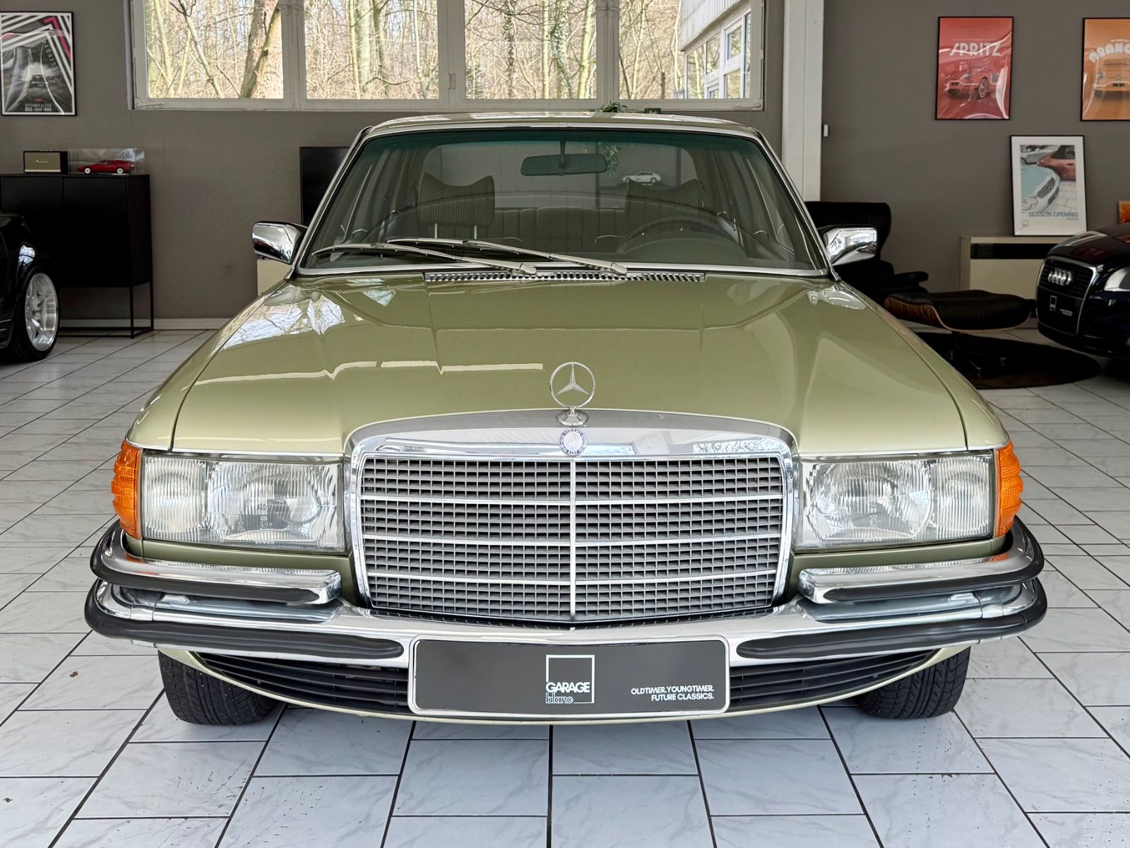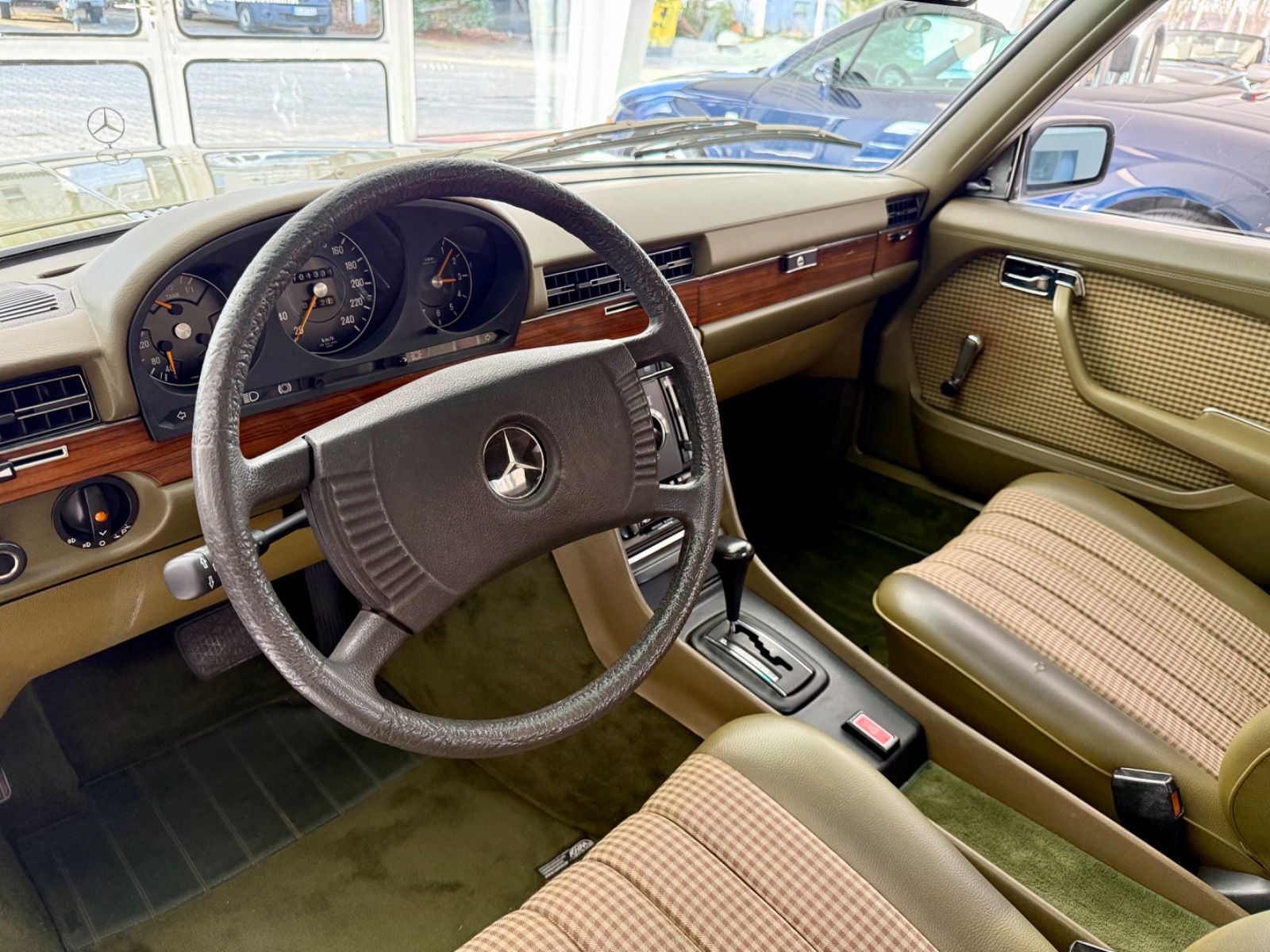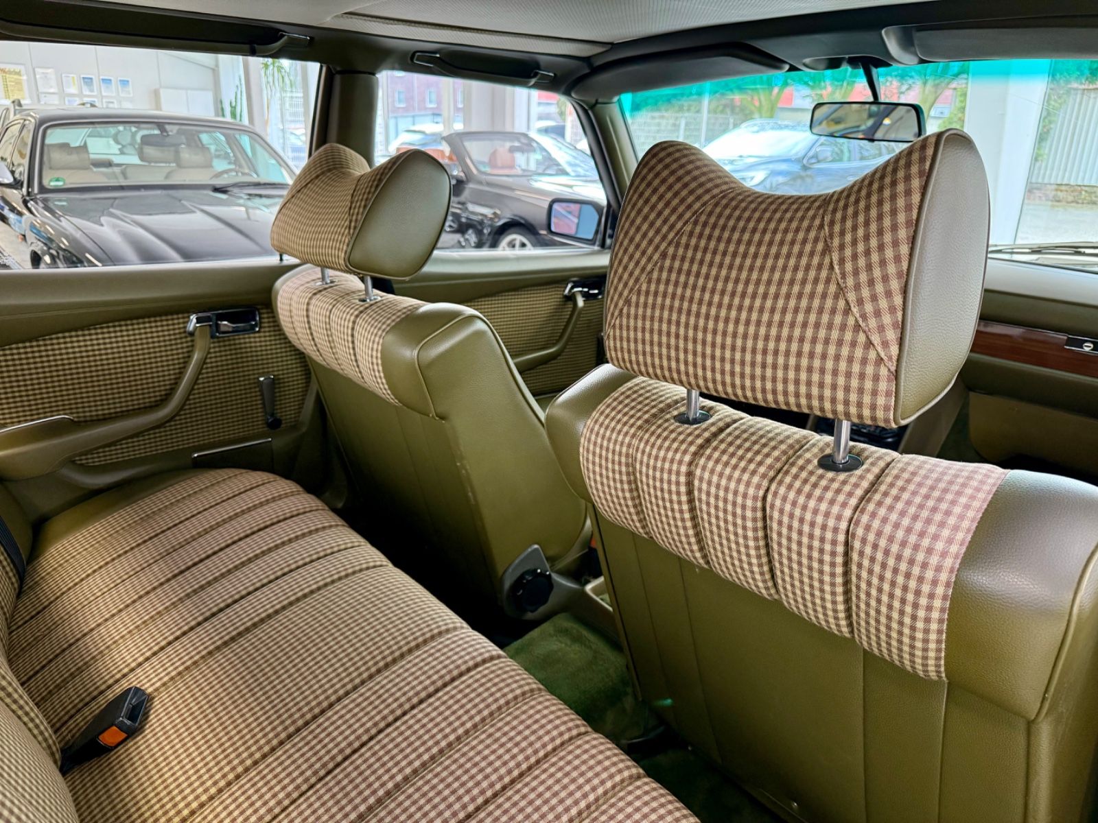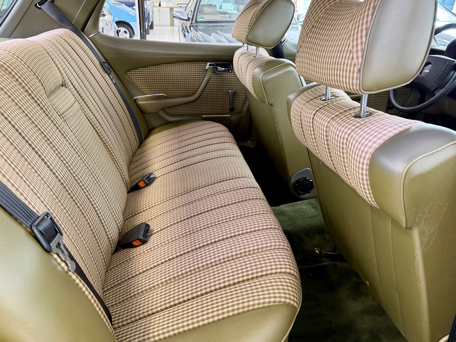 Genau ein solches Exemplar übernahm Herr Hubert K. (Jahrgang 1913) am 13.09.1977 bei Mercedes Benz Brüggemann in Düsseldorf in Empfang. Wie zu dieser Zeit nicht ungewöhnlich, entschied er sich sehr bewusst nur für die Sonderausstattungen, die für ihn persönlich von Belang waren: es sollte klassisches Silbergrün-Metallic mit Stoff in Moosgrün sein, für entspanntes Fahren orderte er Automatik und Servolenkung, außerdem ein Radio Becker sowie ein elektrisches Schiebedach.