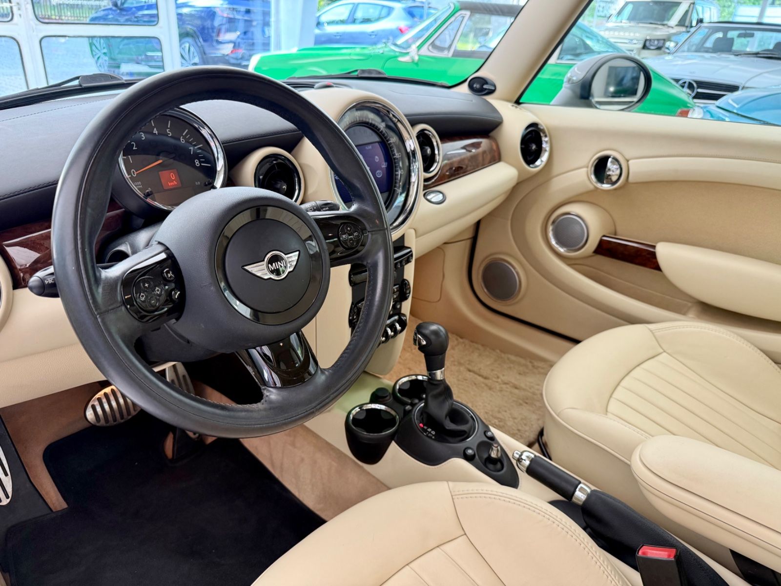 Auch das Holzfurnier, gefertigt bei den Spezialisten in Goodwood in Walnut Burr, die Skalen der Instrumente im RR-Schriftbild und sogar der Dachhimmel in Cashmere ließen fast vergessen, dass es sich "nur" um den Konzern-Verwandten MINI handelte.