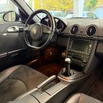 Der Cayman ist schön und sinnvoll konfiguriert, in Uni-Tiefschwarz mit Alcantara-Interieur und den perfekt passenden 19-Zoll-Rädern im Carrera S II-Design. Das Infotainement-Paket mit Soundsystem und Bluetooth ist ebenso an Bord wie die Klimaautomatik und Bi-Xenon-Scheinwerfer mit Kurvenlicht.