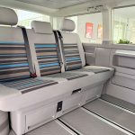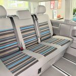 Er entschied sich aufgrund nur noch geringer Jahresfahrleistung bewusst für den 2.0-Liter TSI-Motor mit 150 PS und 6-Gang-Schaltung, eine ungewöhnliche, aber heute überraschend harmonische Wahl: mit dem kräftigen Benziner wird der Bus plötzlich so zeitgemäß leise und modern, dass man sich den nagelnden TDI garnicht mehr vorstellen mag.