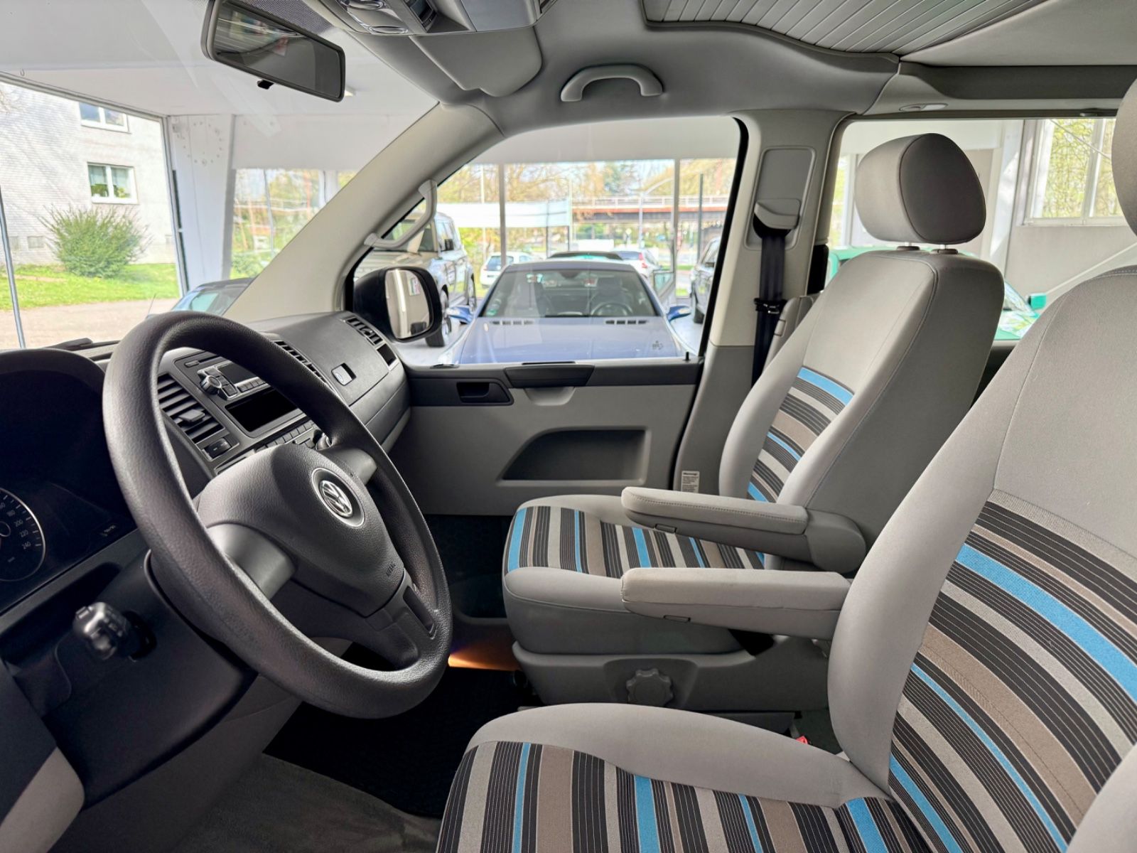 Audiosystem RCD 210 (Radio/CD-Player mit MP3), Außenspiegel elektr. verstell-, heiz- und anklappbar, Einparkhilfe vorn und hinten, Fenster im FG-Raum: - schiebbar, Klimaautomatik Climatronic (Fahrerhaus + Fahrgastraum), Metallic-Lackierung, LM-Felgen 7x17 (Neva), Seitenairbag / Kopfairbag (Curtain-Airbag) vorn, Stoßfänger lackiert, Standheizung (Warmwasser), 2. Batterie 80 Ah, Isofix für Kindersitz an Rücksitz, Aufstelldach, Sitze im Fahrerhaus: Fahrer- und Beifahrersitz mit Lendenwirbelstütze, drehbar und beheizbar