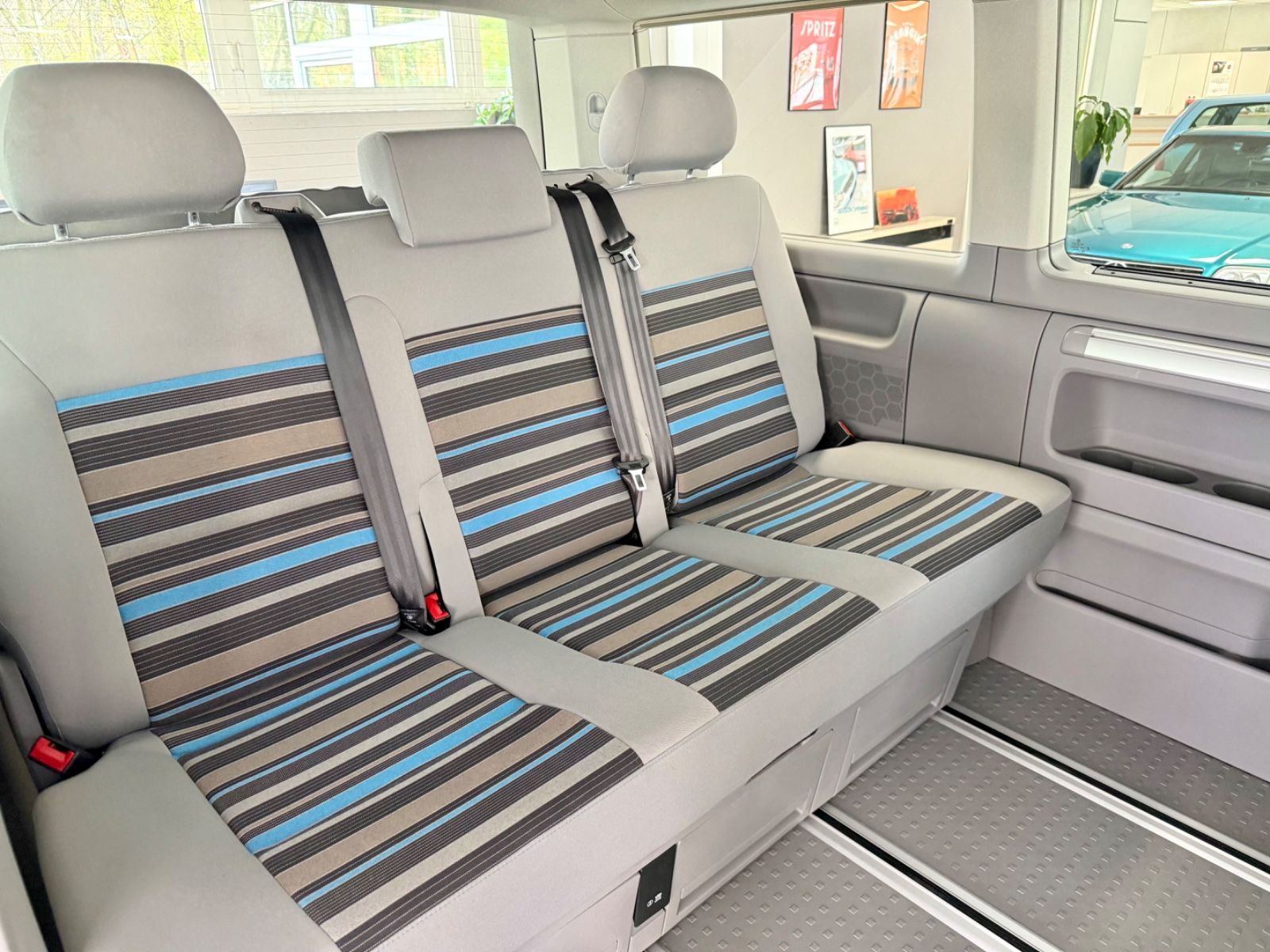 Er entschied sich aufgrund nur noch geringer Jahresfahrleistung bewusst für den 2.0-Liter TSI-Motor mit 150 PS und 6-Gang-Schaltung, eine ungewöhnliche, aber heute überraschend harmonische Wahl: mit dem kräftigen Benziner wird der Bus plötzlich so zeitgemäß leise und modern, dass man sich den nagelnden TDI garnicht mehr vorstellen mag.